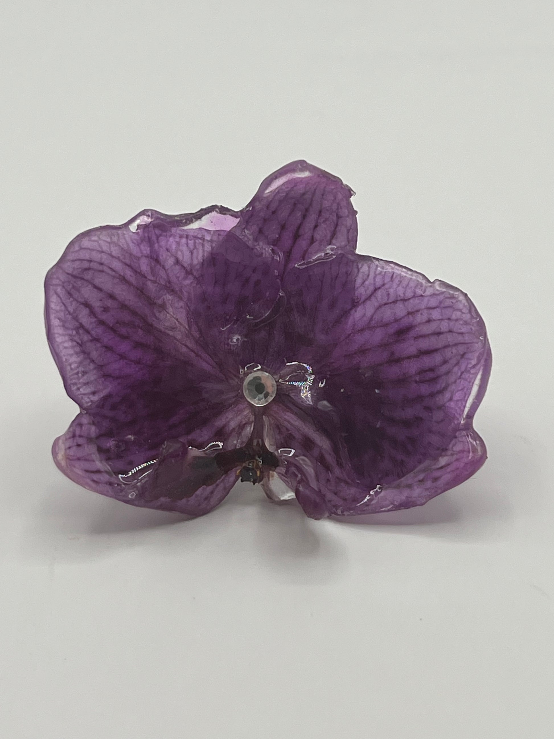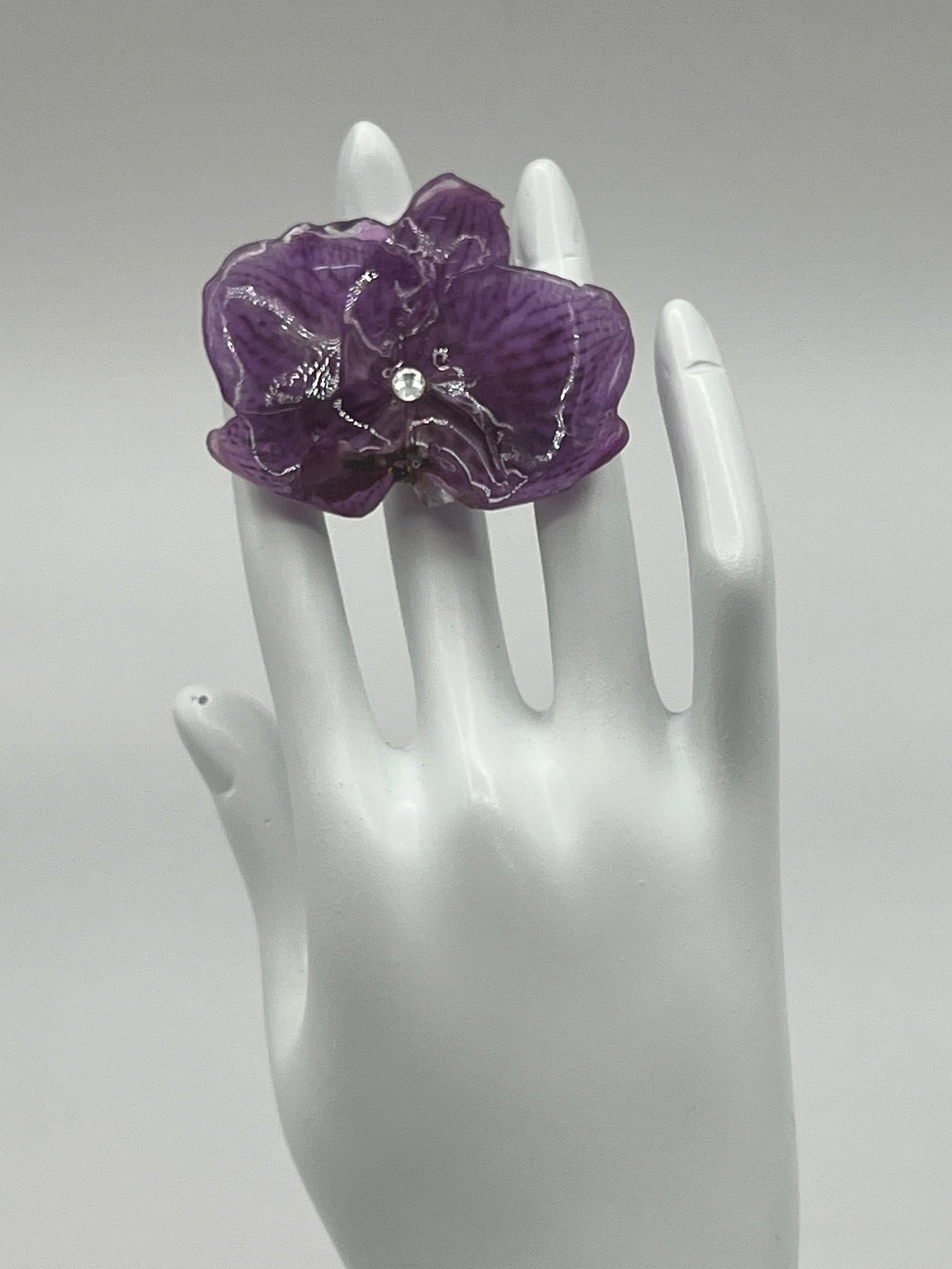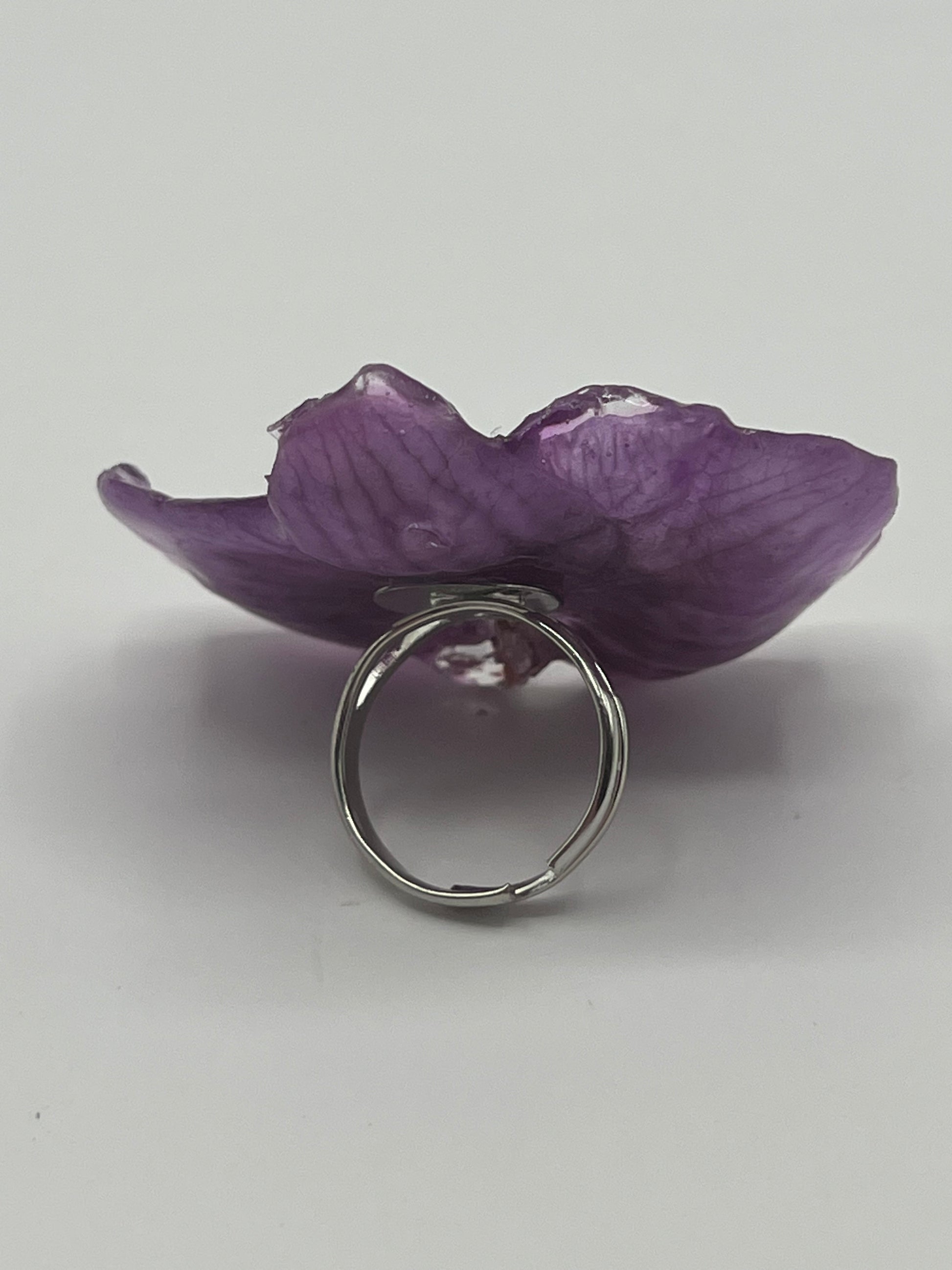Real orchid encapsulated in resin ring. Perfect for any occasion.