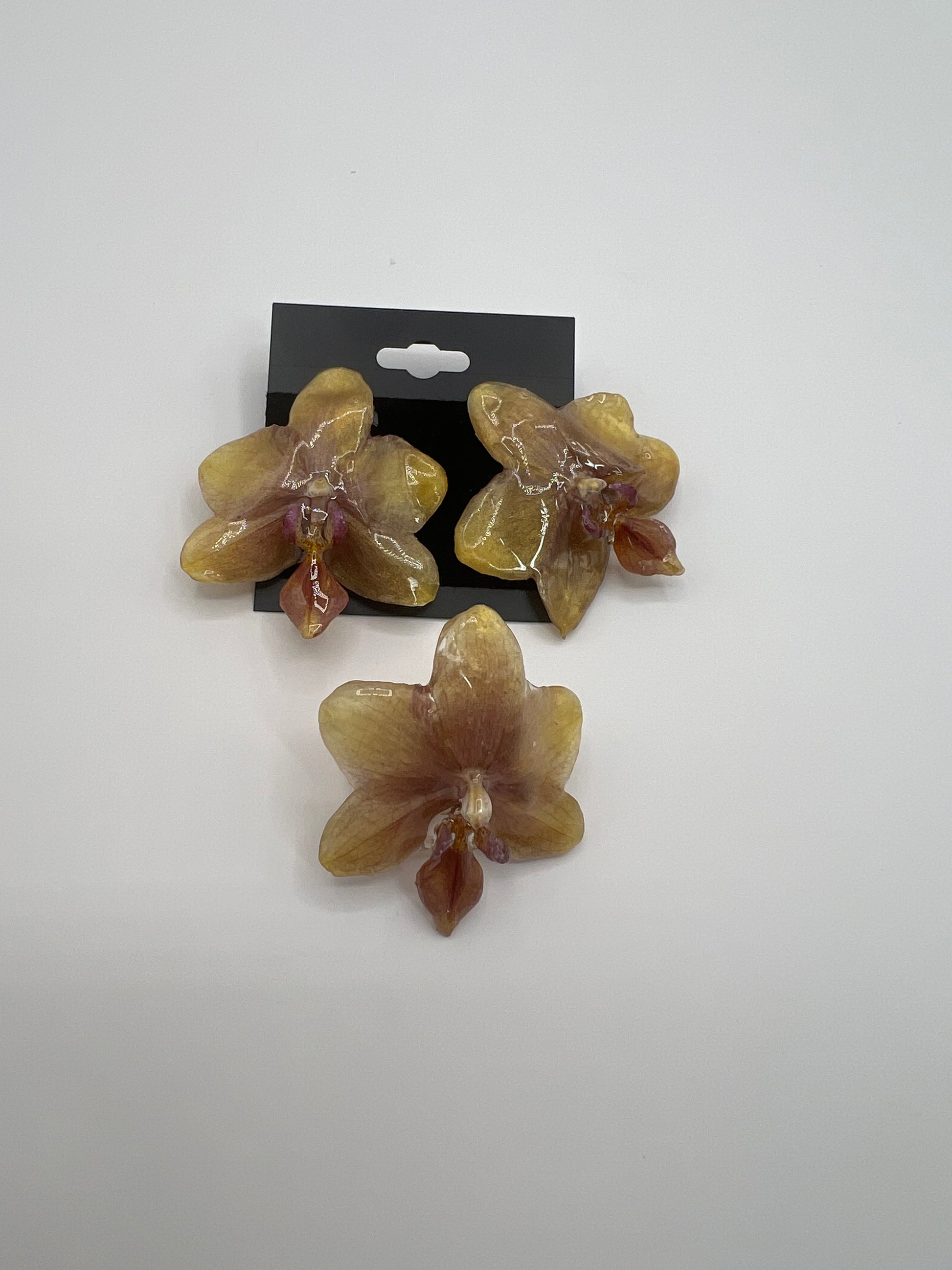 Small flower set, pair of earrings and a ring. Made with real orchid encapsulated in resin.