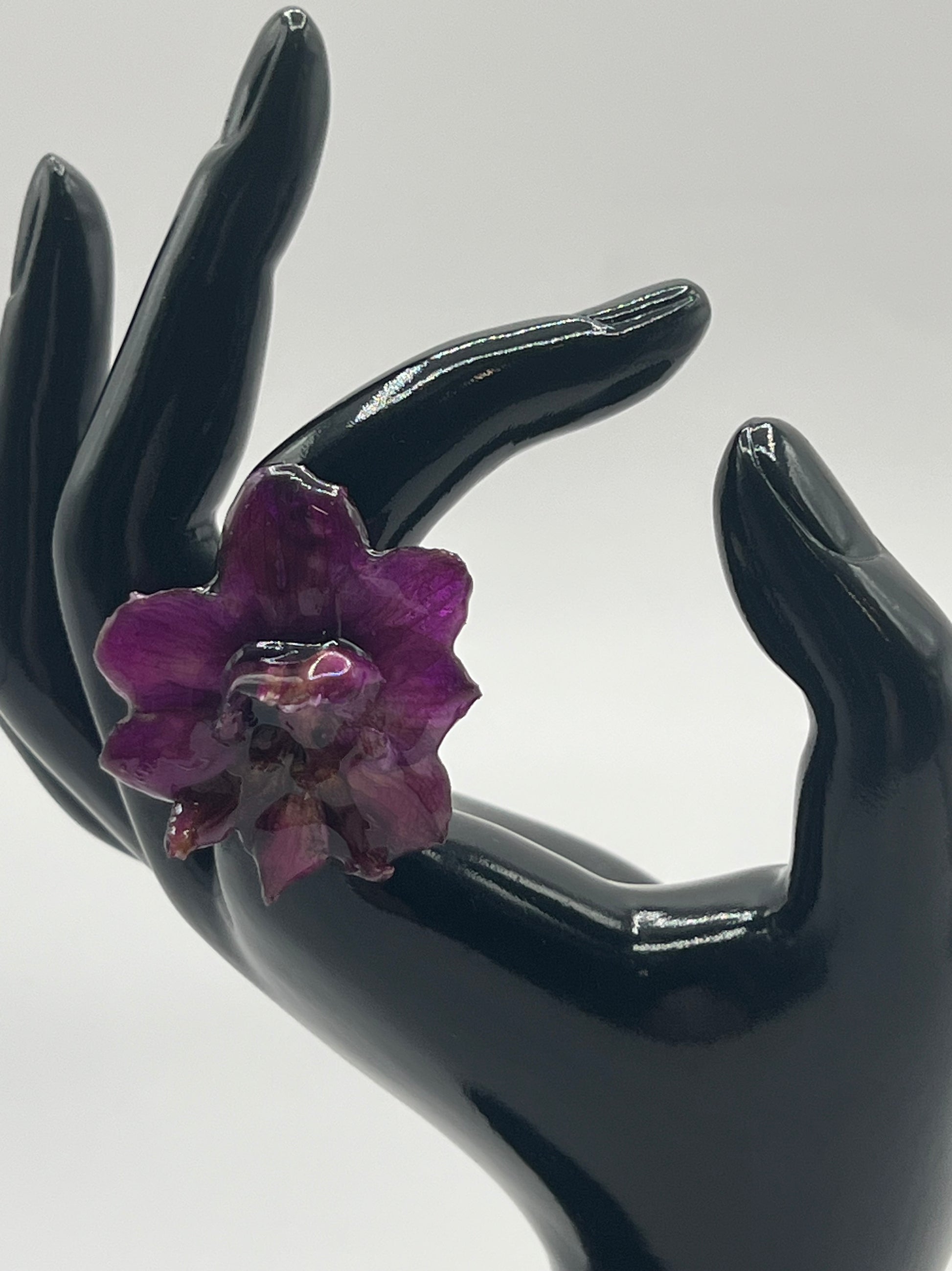 Mini real orchid, encapsulated in resin. This flower was the only one that mutated from her pot. It has double the petals, making it very special and unique just like you.