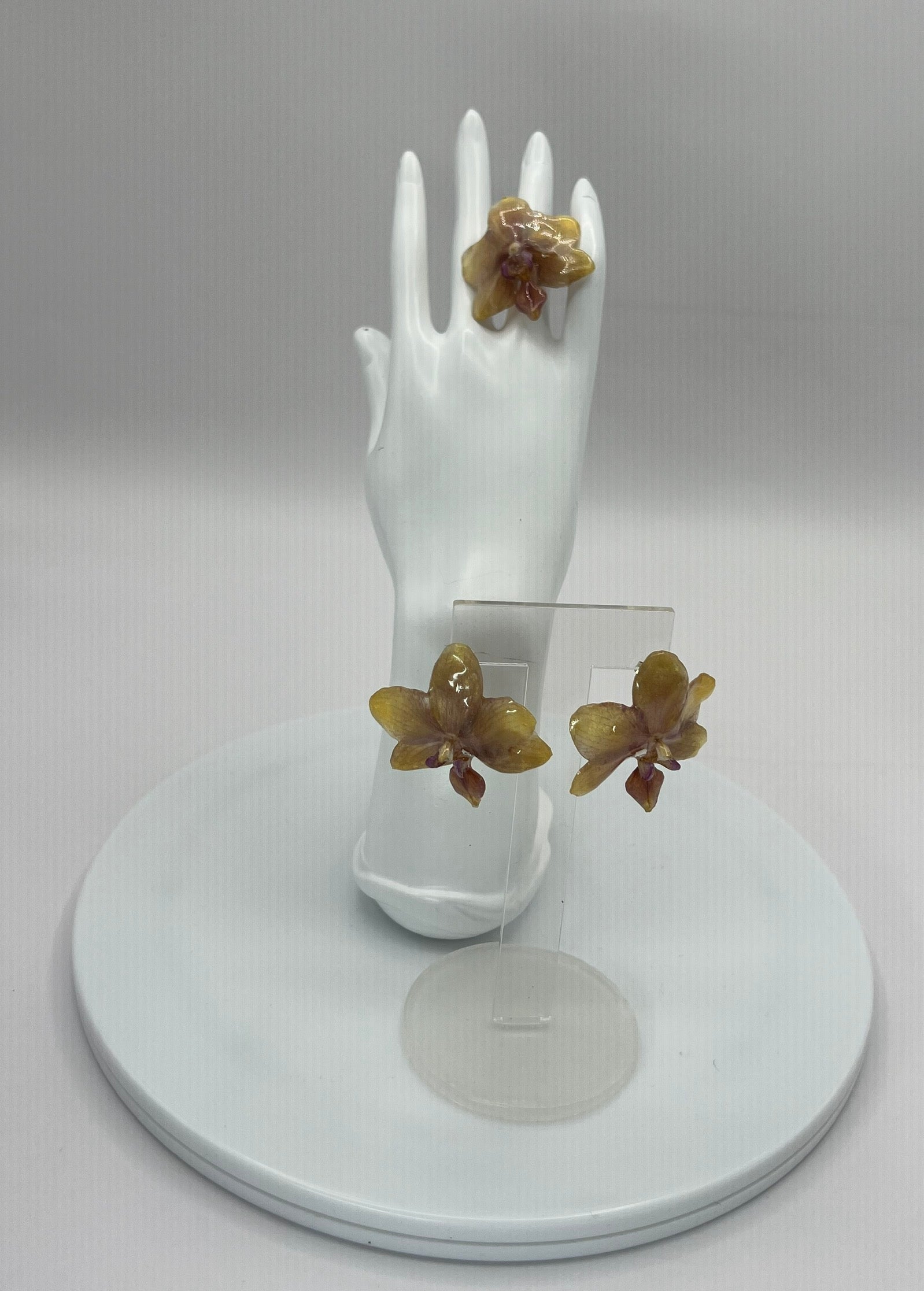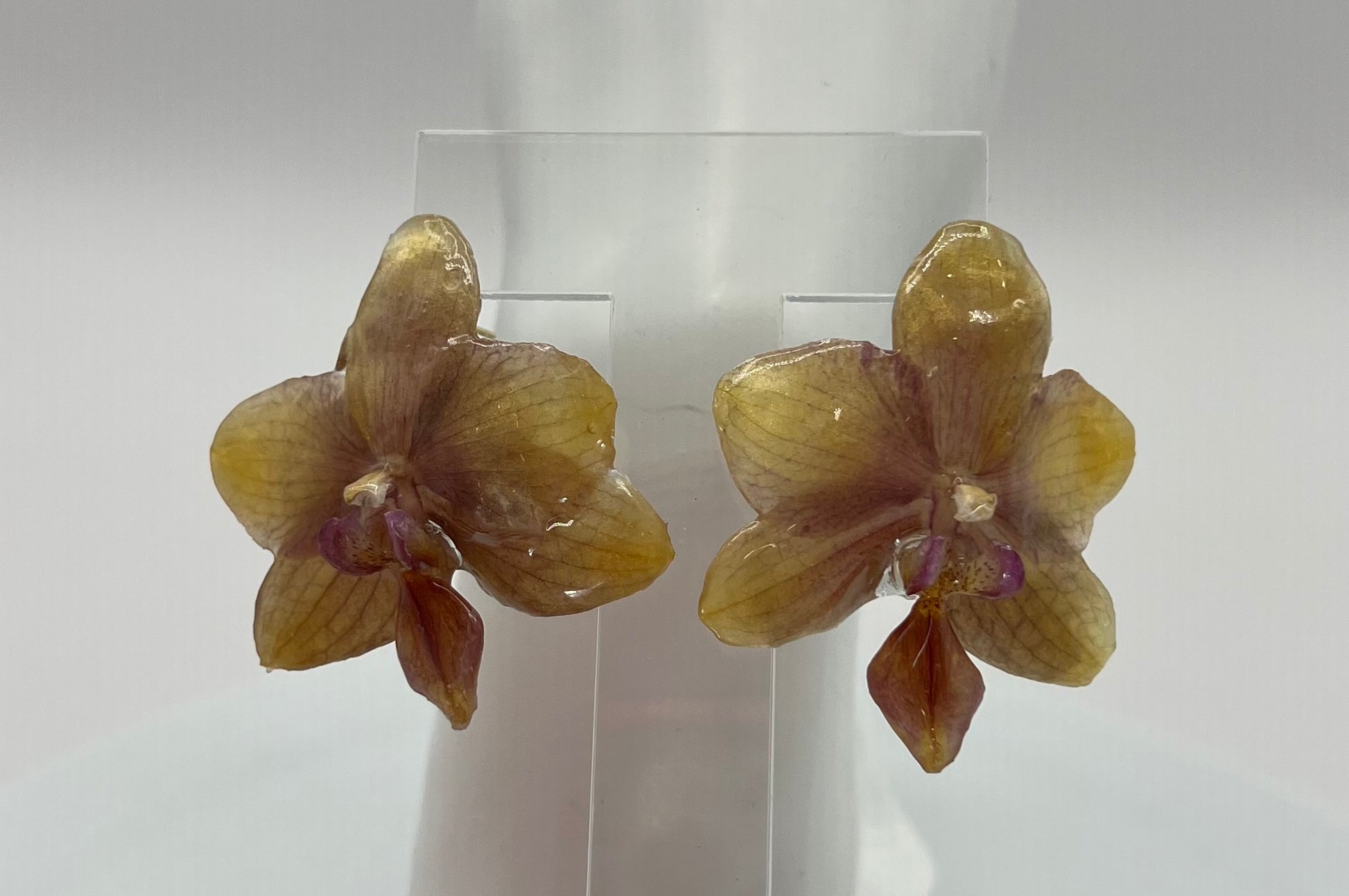 Small Set of natural orchids encapsulated in resin. Makes the perfect gift and a jewelry that will turn heads.