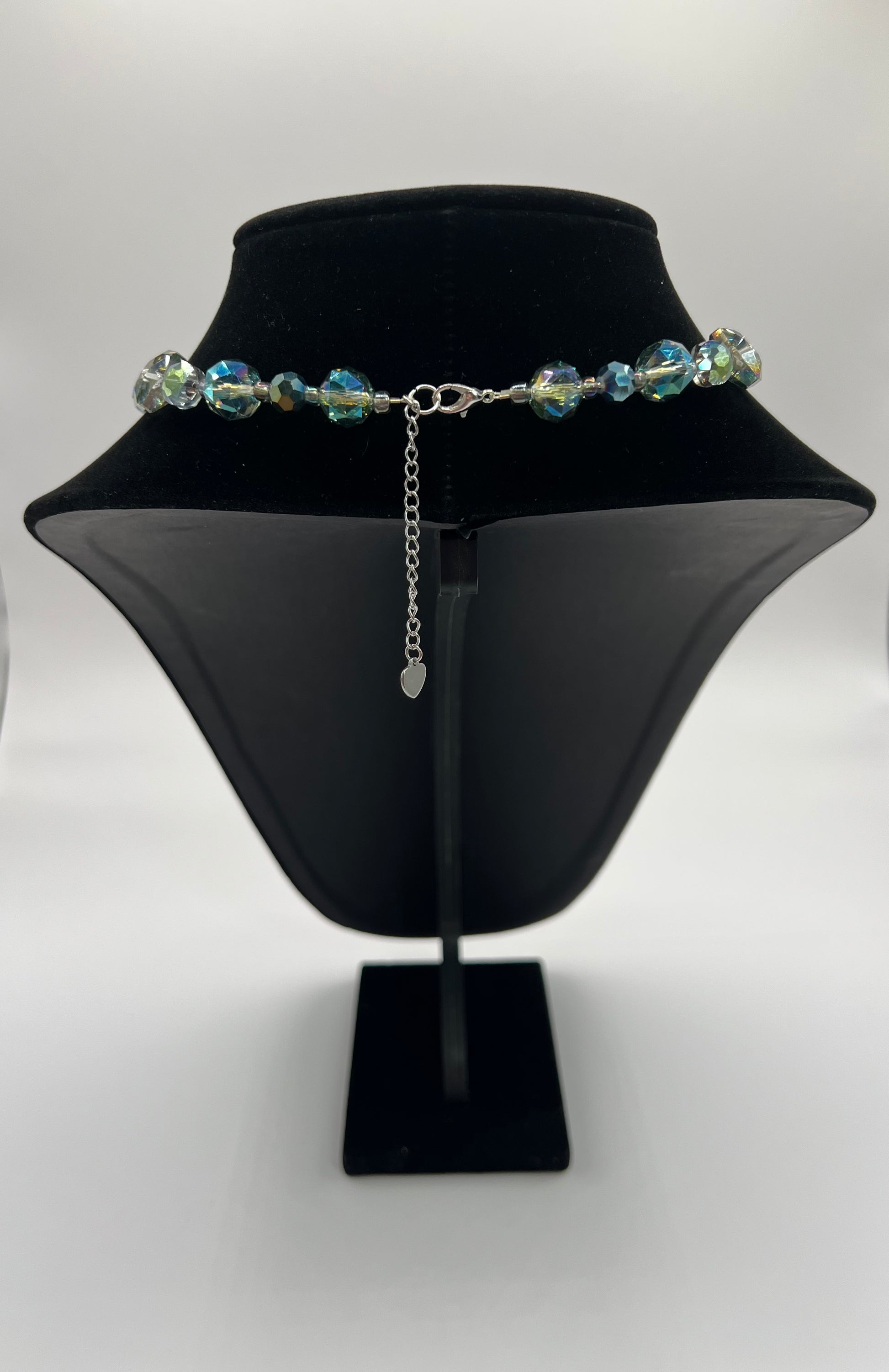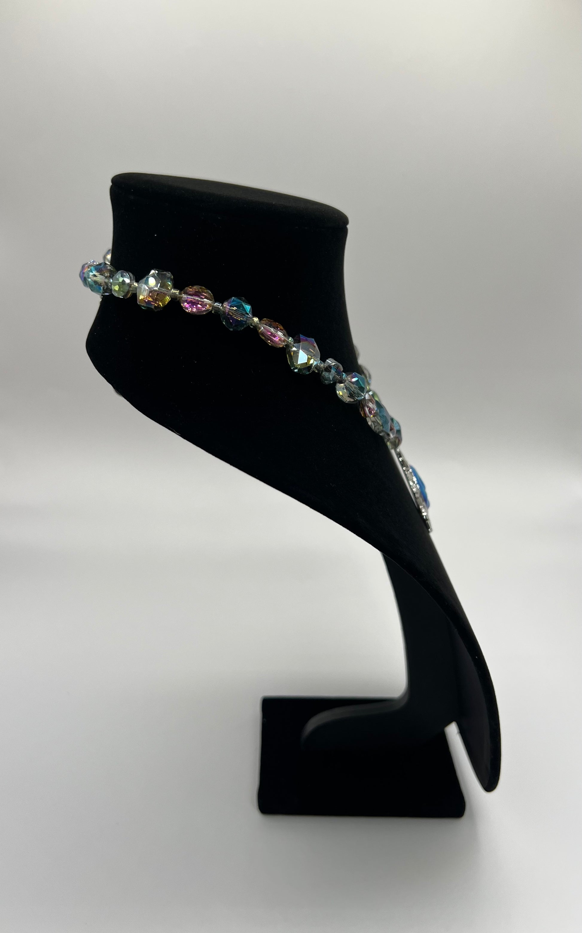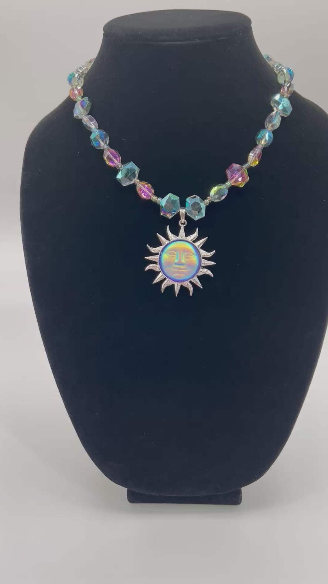 Iridescent or multicolor glass beads and a sun charm.